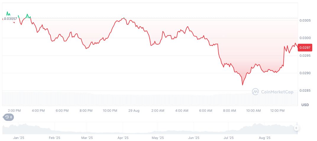 CoinMarketCap数据显示,以$PENGU为代表的Pudgy Penguins市值为18.7亿美元,24小时交易量为3.4189亿美元。当前代币价格为 0.03 美元,截至 2025 年 8 月 29 日的 90 天内增长了 198.48%。