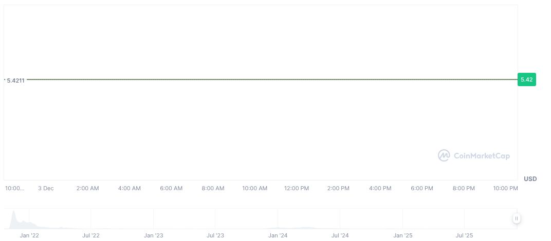 根据 CoinMarketCap 最新的加密货币数据,截至 2025 年 12 月 3 日,Call of Odin’s Chosen 的价格为 5.42 美元,完全稀释后市值为 271,052.62 美元。60 天的价格变化暴跌 64.58%,凸显了巨大的波动性。尽管目前的流通供应量为零, COC的市场表现 需要采取战略方法来吸引用户并实现持续增长。