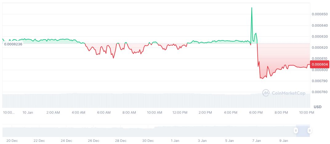 根据 CoinMarketCap 的数据,Capybobo 的 PYBOBO 代币记录了 24小时交易量2,789,132.48美元,变化了5.37%。尽管 市值数据不可用,完全摊薄后的价值为 80,494,413.98 美元。在过去 90 天内,该代币显示 上涨11.99%,表明市场情绪整体积极。